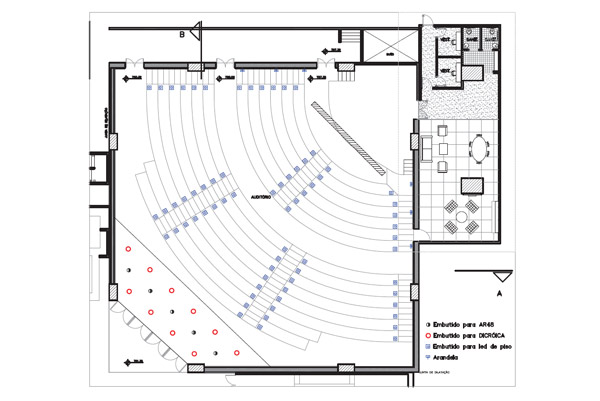 | Centro de Convenções Rebouças / SP : Implantação de novo projeto acústico; iluminação através de LEDs, novos camarins, adequações diversas para atendimento às normas de acessibilidade e projetos complementares, incluindo planejamento e gerenciamento dos trabalhos. |